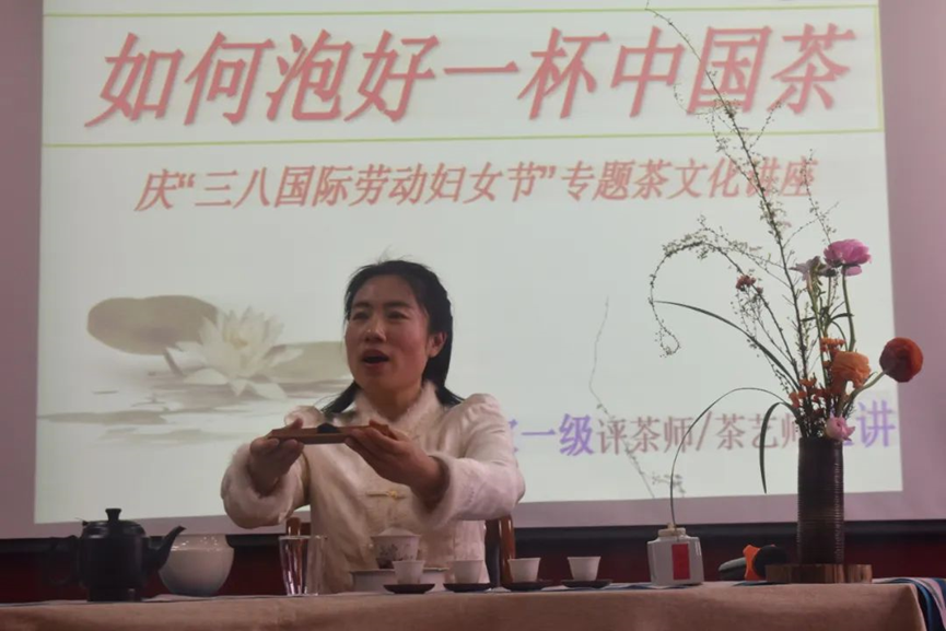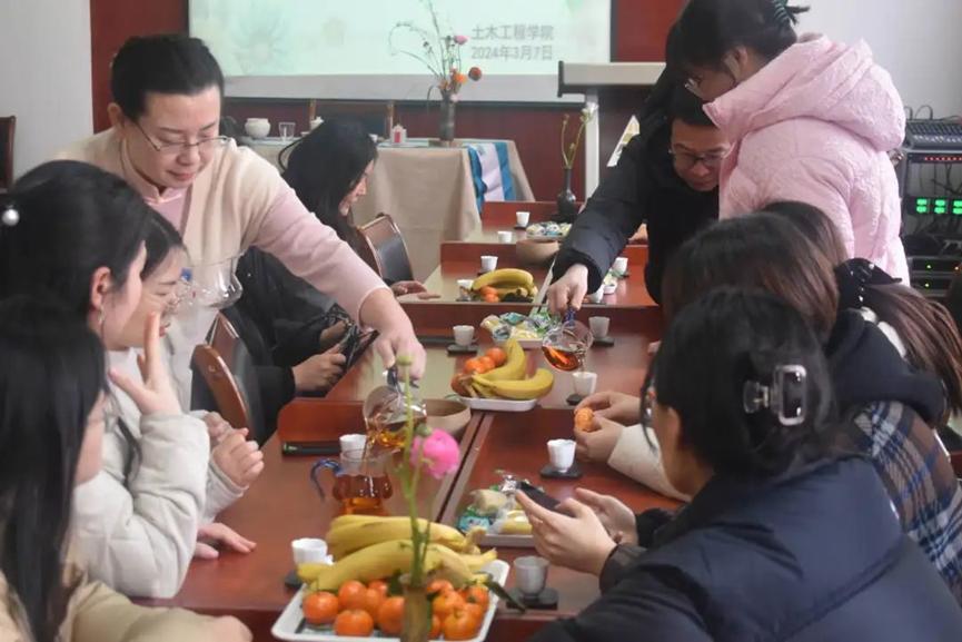 于3月7日在土木馆304举行了浅品清茶—“三八”国际妇女节活动。讲座邀请了烟台青未了茶学院院长、高级评茶师孙雪任主讲人,学院女教职工及茶文化爱好者参加了活动。