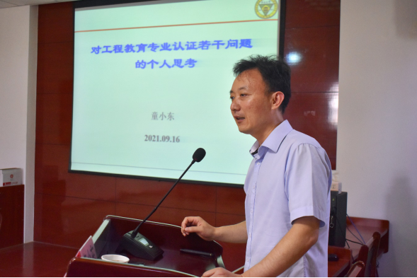 报告会前,逯静洲院长对童小东教授的莅临指导表示热烈欢迎。童教授从我国土木工程专业评估(认证)的发展历史、专业认证中若干术语的基本含义、工程师的成长与工程教育认证的关系、培养目标、毕业要求及持续改进六个方面对土木工程专业评估(认证)工作中的关键问题进行了深入阐述;论述了土木工程专业评估向工程教育认证转变中形式调整背后的实质性变化,通过对复杂工程问题的解读,阐明了解决复杂工程问题能力的培养和学生“知识、技能和素养”的提升贯穿于工程教育全过程;分析了工程师的成长与工程教育认证关系,阐述了培养目标和毕业要求的确定原则和基本要求,重点分析了持续改进考查和关注的重点以及达成评价的目的、前提条件、工作原则和评价方法。最后,强调了专业认证中“通盘考虑、顶层设计、因材施教、统筹优化”的工作原则。