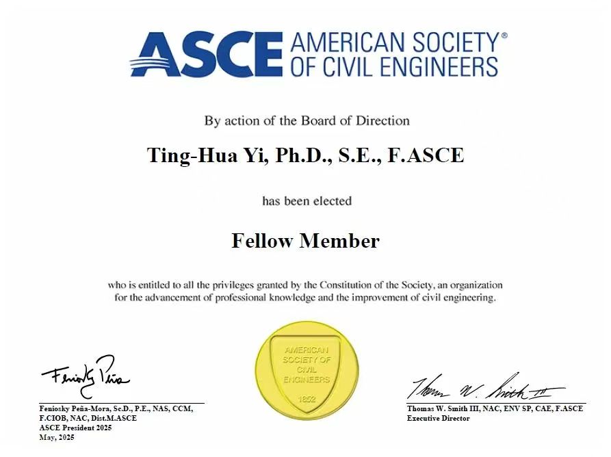 据悉,ASCE会士是经土木工程领域权威专家组成的审核委员会严格评审和投票表决产生,仅有3%的ASCE会员获此殊荣。入选者须在职业生涯中取得国际一流水平的研究成果,且具备深厚的专业知识、丰富的实践经验、广泛的学术影响和高质量的人才培养。