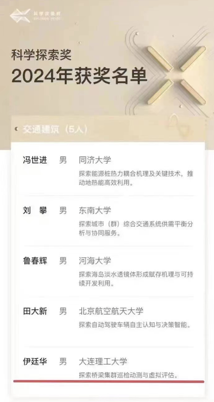 1998级校友、大连理工大学伊廷华教授获此殊荣。